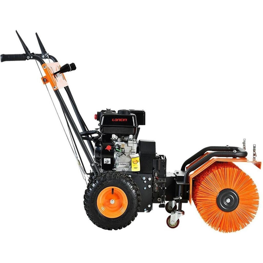 Die FUXTEC FX-KM196 SET1 Benzin-Kehrmaschine ist ein leistungsstarkes Gartengerät mit Radantrieb und einem 4-Takt-Motor. Mit einer Arbeitsbreite von 60 cm und einer Leistung von 4.100 W (5,5 PS) eignet sie sich ideal für Reinigungsarbeiten rund um Haus und Garten. Der Lieferumfang beinhaltet einen Kehrgutbehälter, ein Schneeräumschild und einen Schneefräsenkopf.