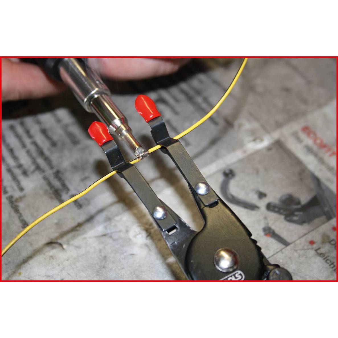 Der KS Tools 115.1052 Lötspitzen-Halter ist das ideale Werkzeug für präzises Löten. Mit diesem Halter wird sichergestellt, dass Stromlitzen sicher fixiert werden, wodurch ein Abknicken der Lötverbindung effektiv verhindert wird. Dank der praktischen Feststellung der Zange können Sie diese ablegen, wodurch beide Hände zum Löten frei bleiben. Dies minimiert das Risiko von Verbrennungen an den Fingern und ermöglicht ein ergonomisches Arbeiten.