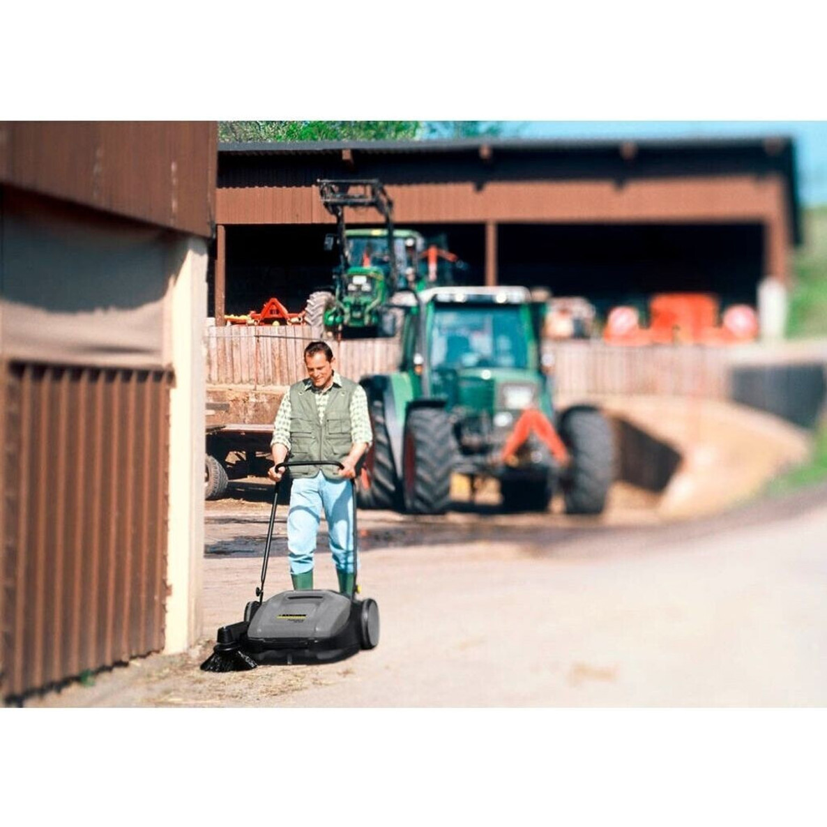 Die Kärcher Kehrmaschine KM 70/15 C ist eine effiziente Handkehrmaschine, die sich perfekt für die schnelle Reinigung von kleineren Flächen eignet. Mit einer maximalen Flächenleistung von 2.800 m²/h bietet sie eine beeindruckende Reinigungsleistung für Gehwege, Einfahrten und Terrassen.