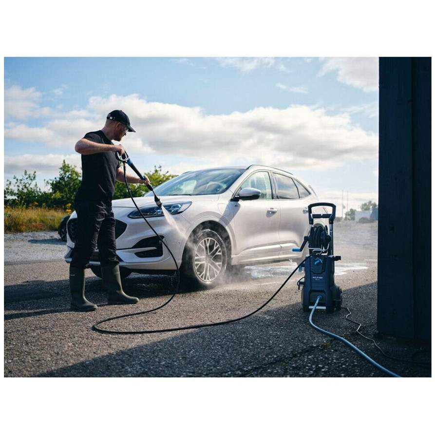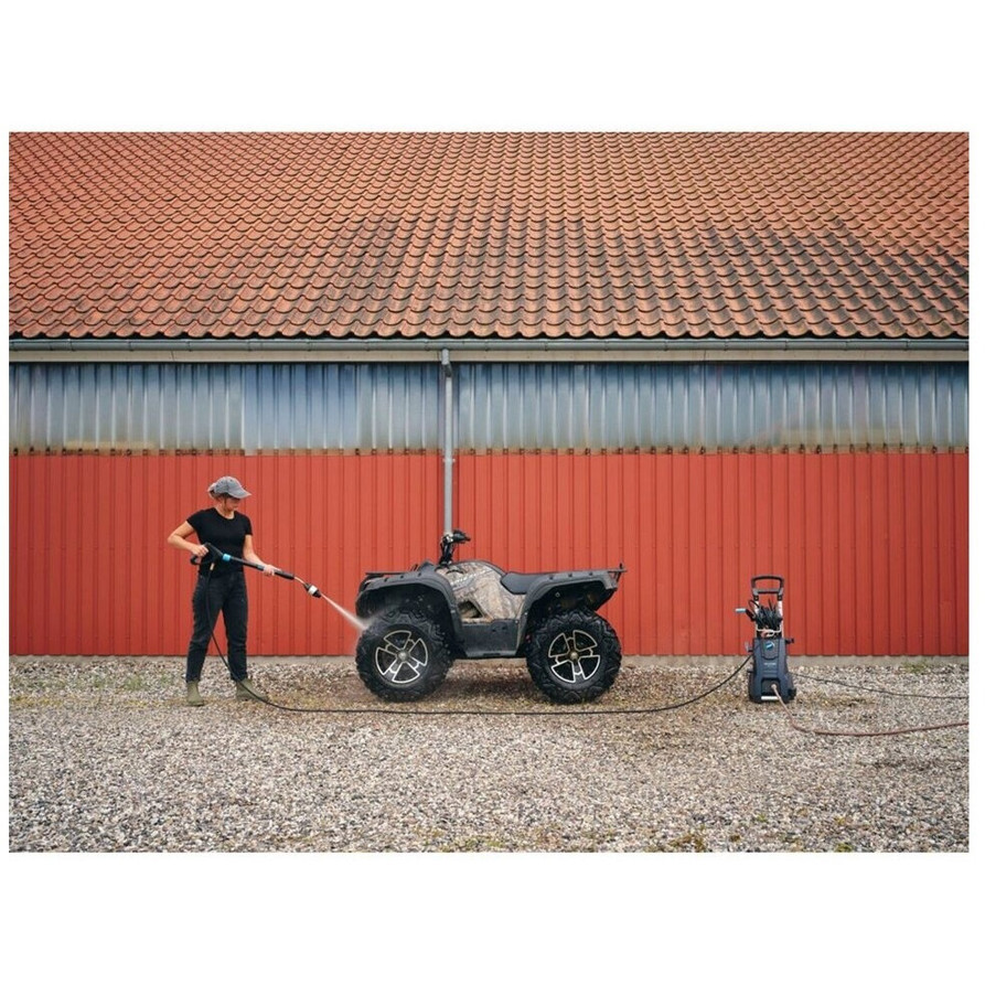 Ausgestattet mit einer 10 m langen Schlauchlänge bietet dieses Modell ausreichend Reichweite für verschiedenste Anwendungen. Seine Kaltwassertechnologie sorgt für eine effiziente Reinigung ohne den Einsatz von Heizenergie.