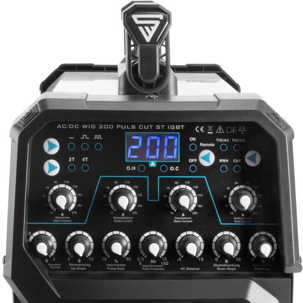 STAHLWERK - WIG 200 - AC/DC WIG Schweißgerät Puls mit Plasma Vollausstattung (49 x 25 x 40 cm) 1,6-4,0mm Elektroden & 1,0-2,4mm Schweißdraht, 13kg