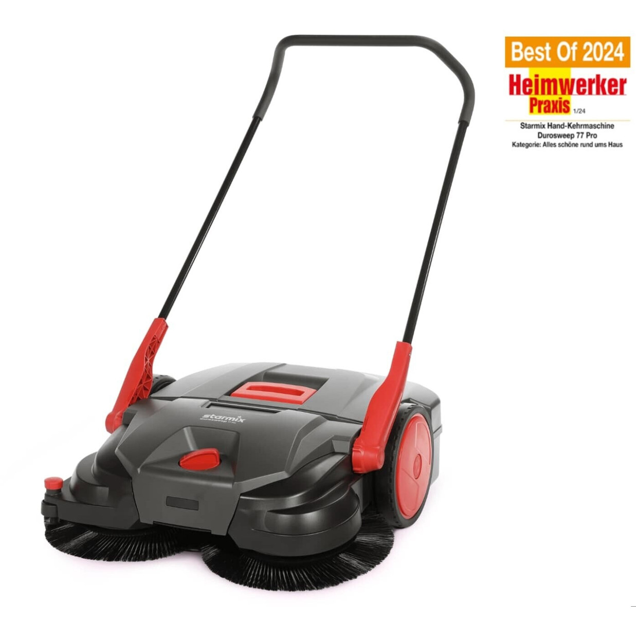 Die Starmix DuroSweep 77 Pro ist eine leistungsstarke Handkehrmaschine, die sich ideal für die effiziente Reinigung von Flächen bis zu 3.000 m²/h eignet. Mit einer Arbeitsbreite von 77 cm und einem großzügigen Behältervolumen von 40 Litern meistert sie mühelos Schmutz und Kehrgut.