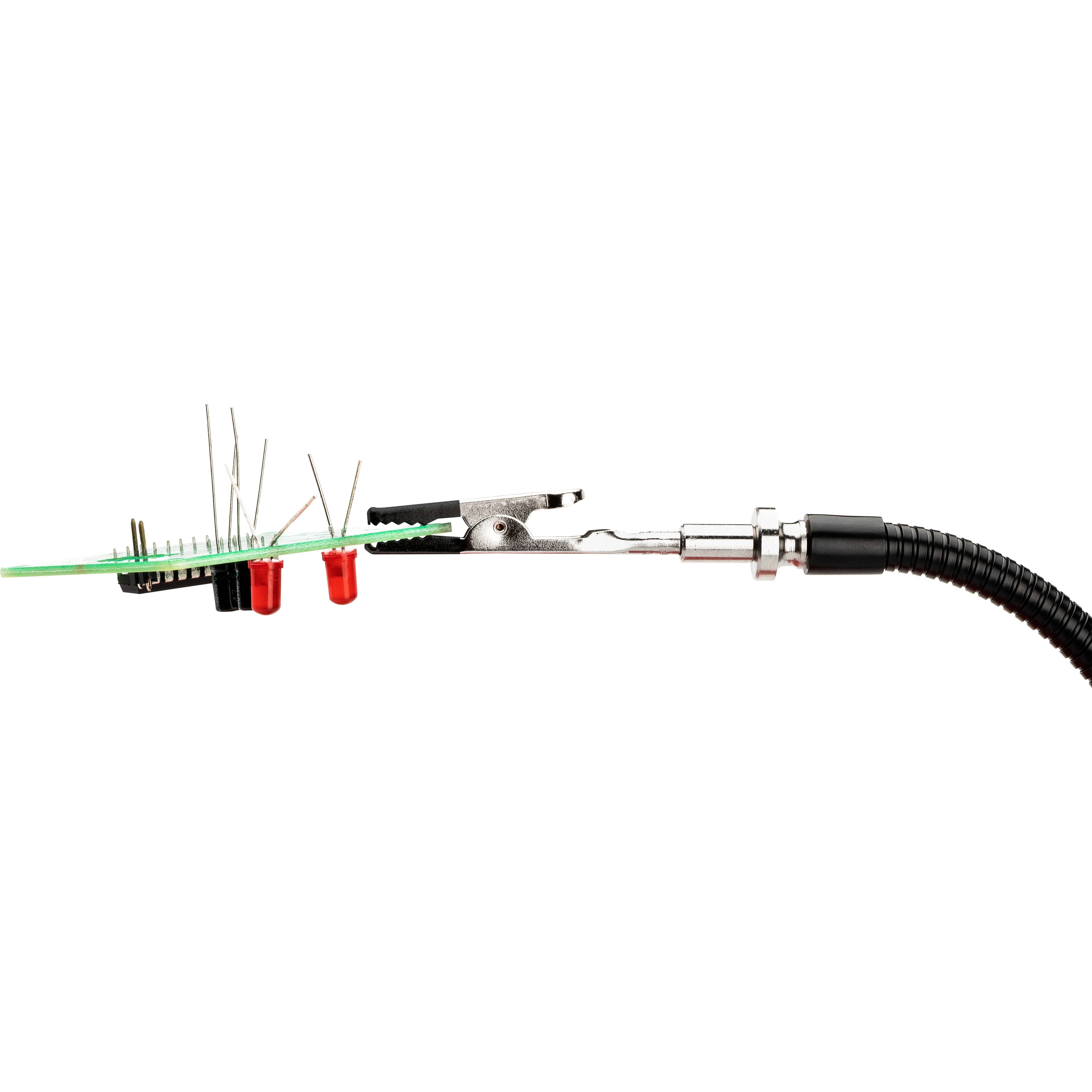 Der Weller Platinenhalter WLACCHHM-02EU bietet Ihnen die perfekte Lösung für präzises und flexibles Löten. Mit seinen vier schwenkbaren Krokodilklemmen ermöglicht er es Ihnen, verschiedene Bauteile mühelos zu fixieren, während Ihre Hände freibleiben. So können Sie sich ganz auf Ihre Arbeit konzentrieren und die Lötqualität erheblich verbessern.