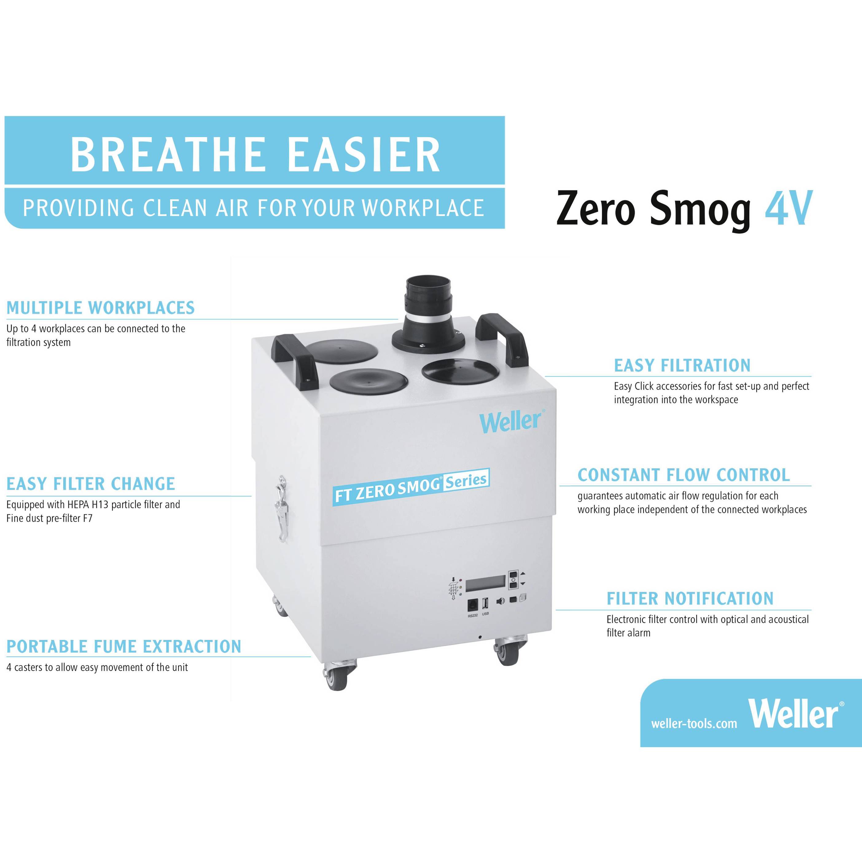 Weller - Zero Smog 4V Antistatische Lötrauchabsaugung (L x B x H) 345 x 325 x 505 mm - 230V, 275W, 230m³/h